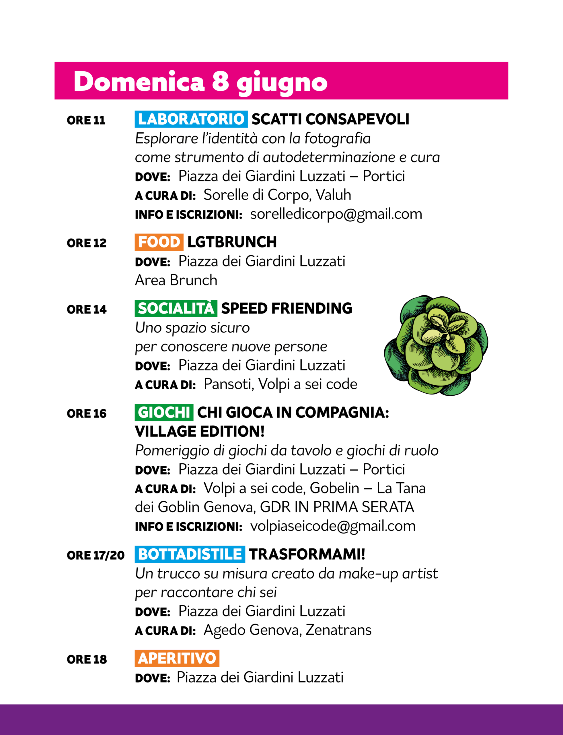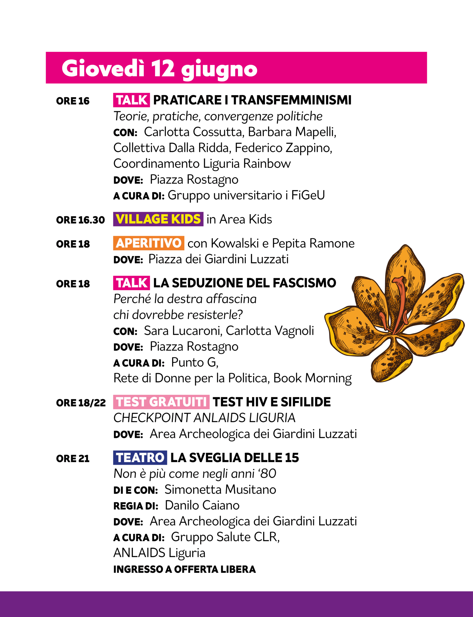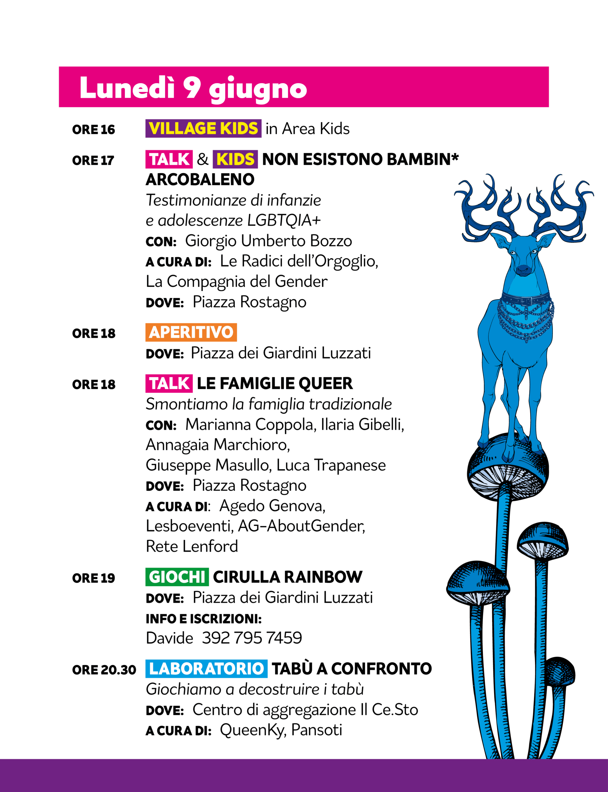 negli spazi dei Giardini Luzzati nel cuore del centro storico di Genova. Ci saranno molti eventi di ogni tipo per tutta la settimana sia per persone adulte che per bambin* con la programmazione del Village KIDS che è sempre UNA BOMBA.