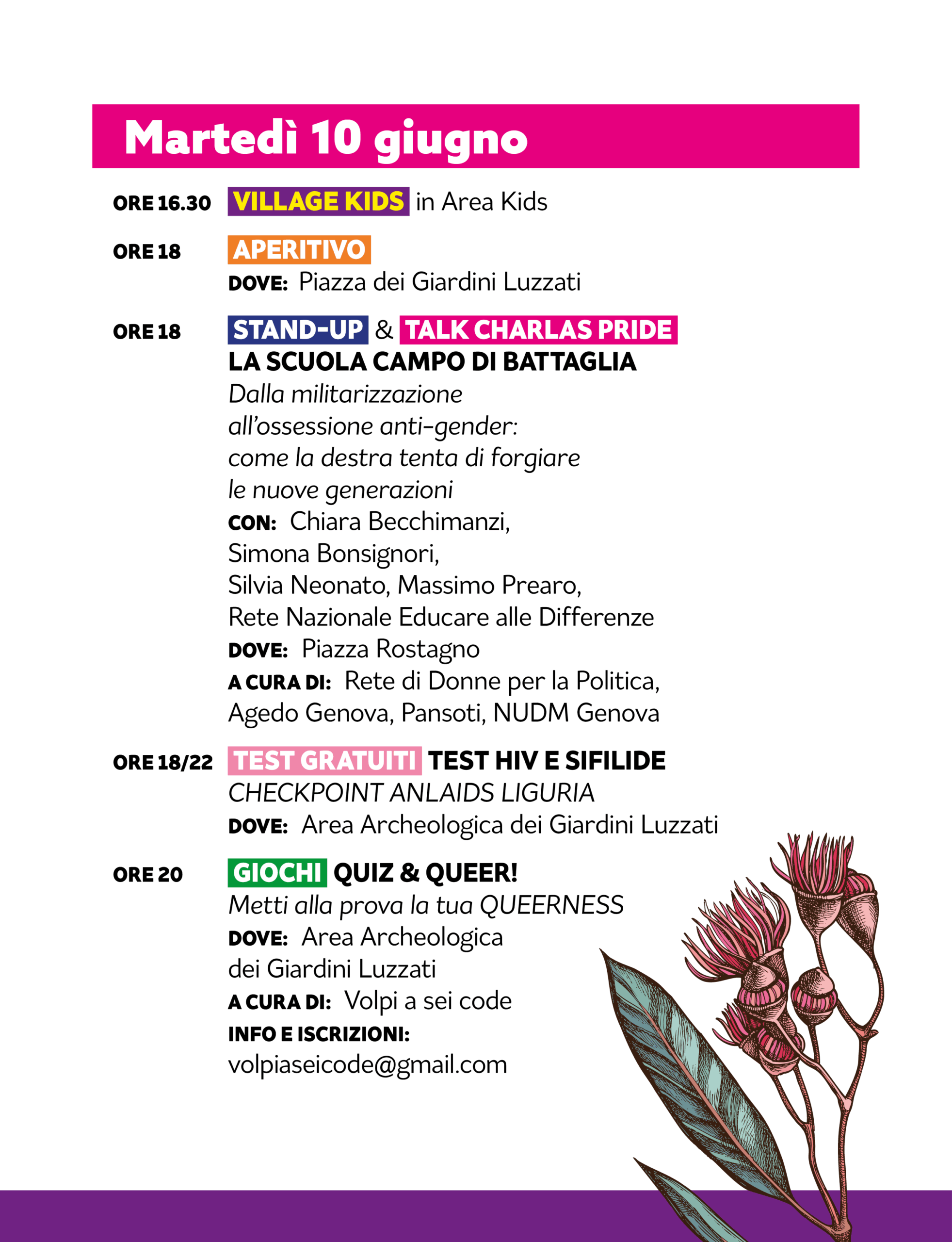 💥 Una settimana, più di 50 eventi per questi primi DIECI ANNI DI LIGURIA PRIDE: occuperemo lo spazio con tutta la nostra queerness, ballando, sudando, giocando, stringendo relazioni, discutendo dei temi che ci riguardano andando alle RADICI e gettando SEMI per il futuro.